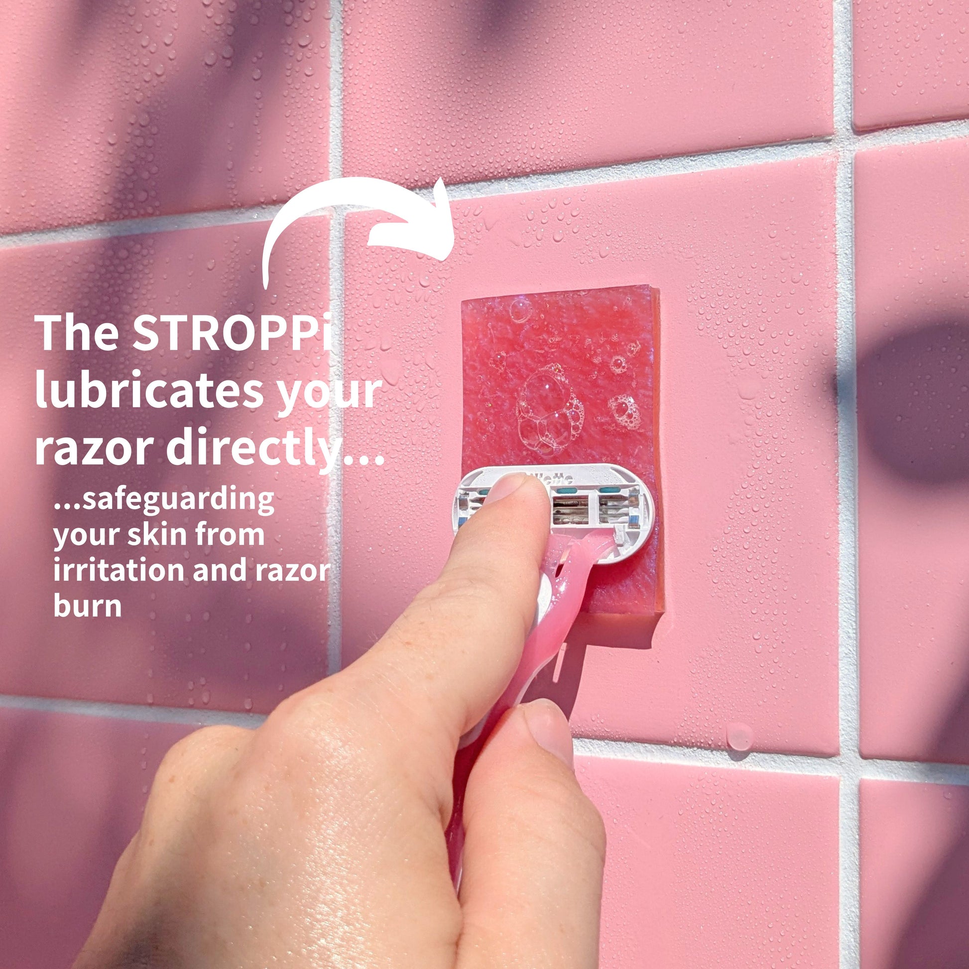 ...The STROPPi to any smooth surface in your shower such as tile, glass, or composite