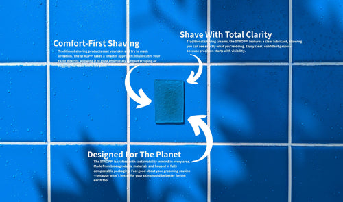The STROPPi is an innovative solid shaving lubricant designed for use with multi-blade razors in the shower. It works by applying a layer of protective lubricant to your razor's wet blades, effectively safeguarding your skin from irritation and ensuring a consistently smooth and nick-free shaving experience every time.